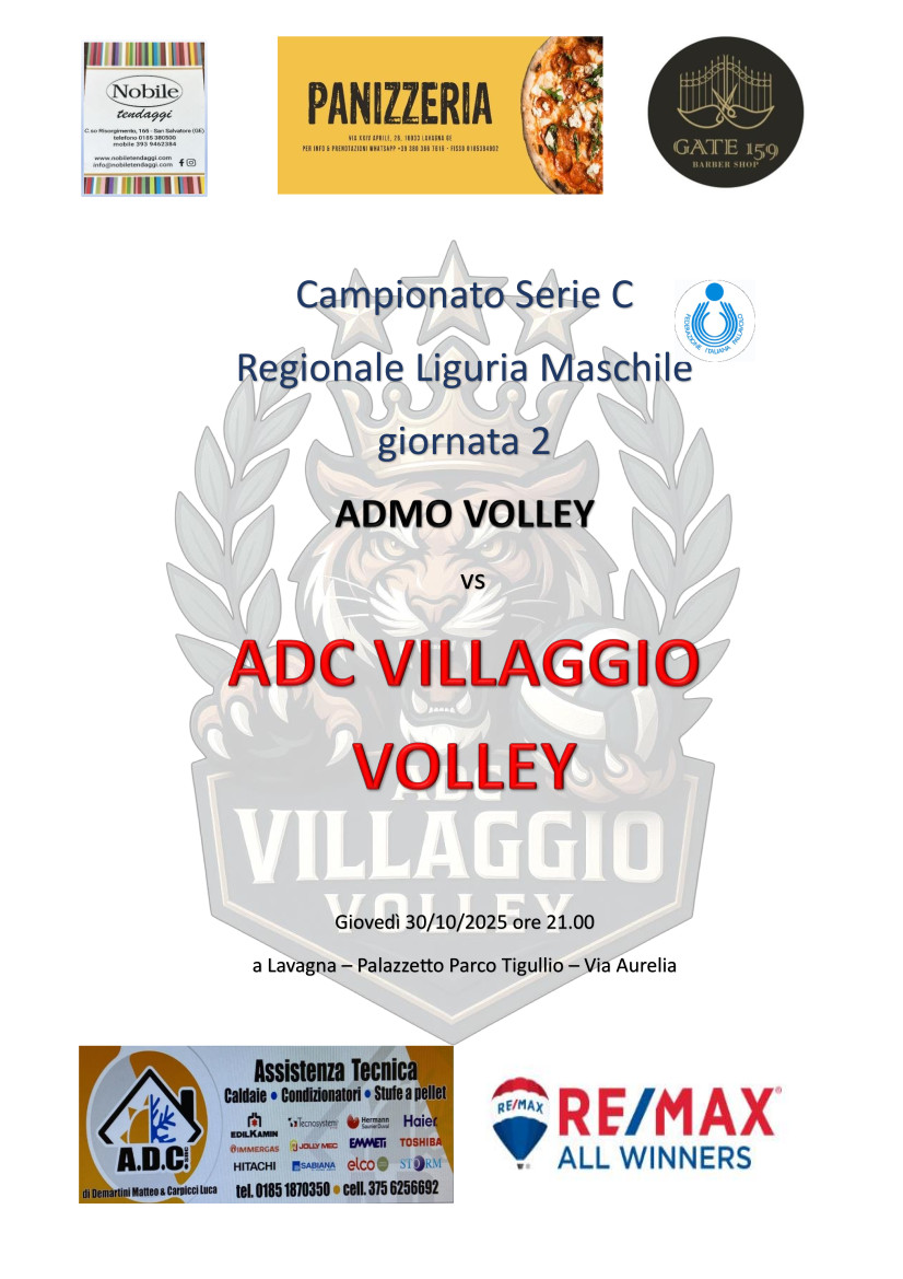 Giovedì 30 ottobre 2025 alle ore 21.00 presso il Palazzetto del Parco Tigullio a Lavagna va di scena il Derby con l'ADMO Volley.