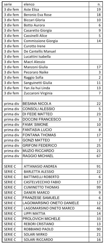 Due gare in previsione per questo fine settimana ed entrambe presso il Centro Benedetto Acquarone di Chiavari nella giornata di Domenica 08 febbraio 2026.